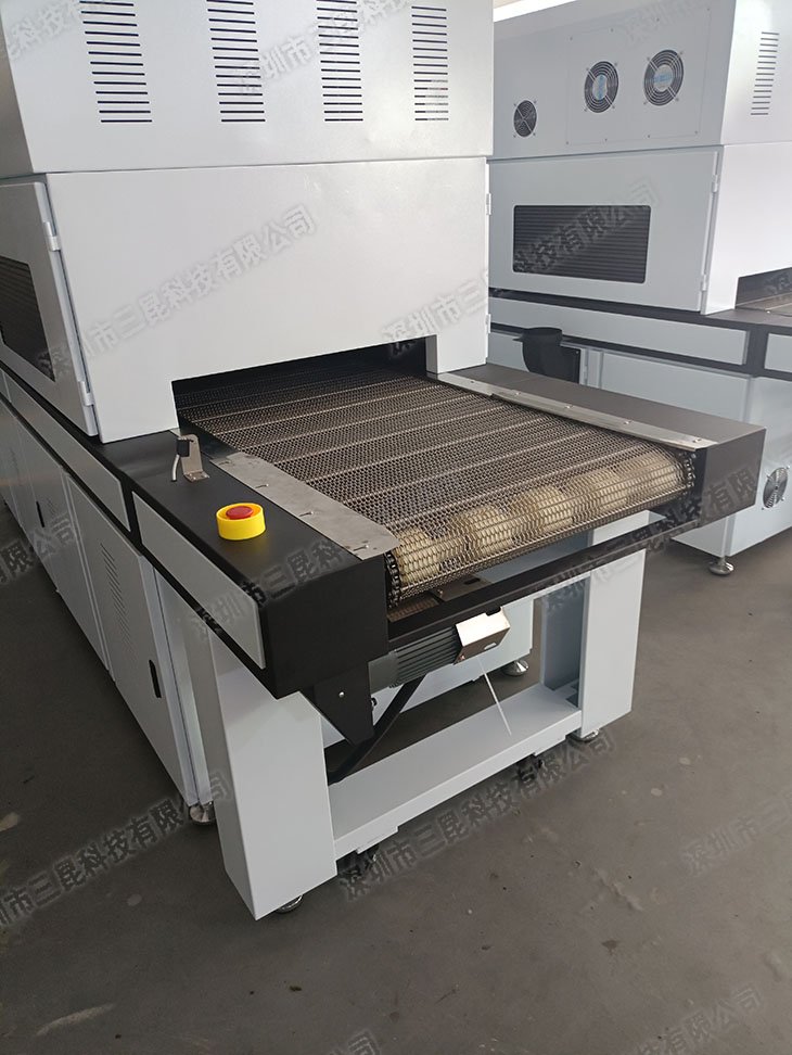 UVLED光固化機采用韓國進口LED燈珠,支持365/405nm雙波段紫外線,搭配550mm寬幅面光源及水冷散熱系統,確保高效穩定固化。設備配備人機交互觸摸屏,可精準調控照射時間、功率及輸送速度(0.5-5m/min),適配不銹鋼網帶輸送系統(寬600mm),滿足PCB油墨、膠水、絲印等工業干燥需求。電動升降燈組設計兼容不同工件高度,連機信號智能控制,支持定制化生產,顯著提升絲印、電子制造等領域的光固化效率與均勻性。