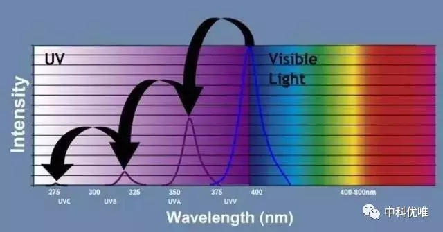 UVLED即紫外發光二極管,是LED的一種,是按照一定的比例集成發光波長為200nm至450nm的大功率LED芯片形成峰值波長為200nm至450nm波段中某個波長的光源。下面小編著重介紹下
