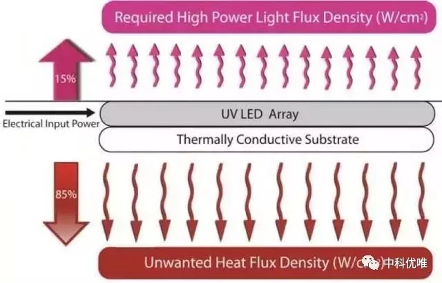 uvled光固化機將15到25%的電能轉換為光,這比傳統的汞燈效率要高,但剩下的75%-85%仍然被轉換為了熱。因此,必須要保持LED陣列的冷卻。