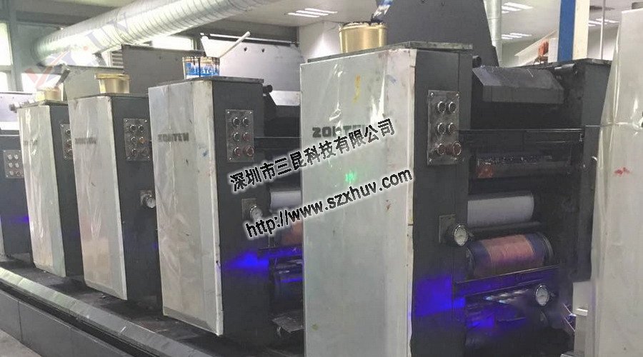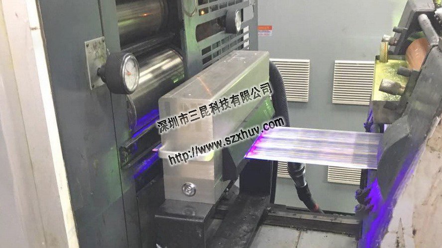 ▲在這種情況下,在佛山客戶的中天膠印機上安裝了LED UV固化系統。 客戶使用杭華161普通UV墨水以60m / min的速度在涂布紙,貼紙等上進行八色打印。 無需汞燈或更換汞燈